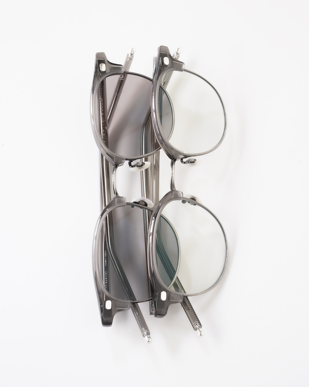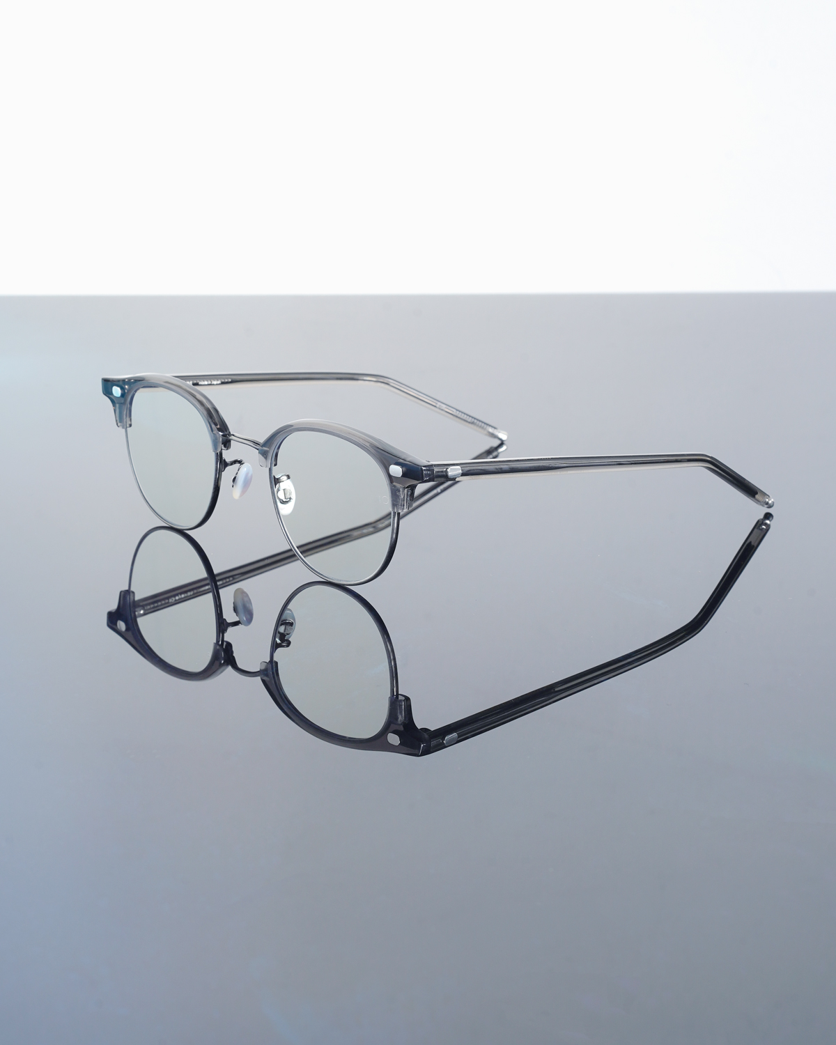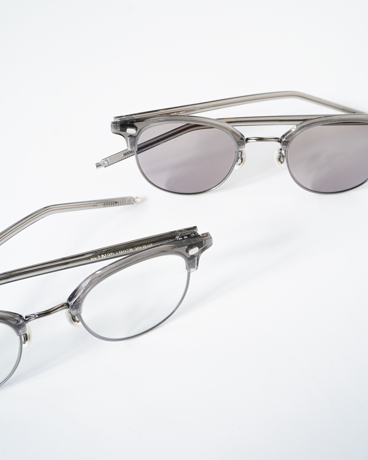 別注で採用した型は「no.1 Ⅳ(47)」。スクエアに若干の丸みを持たせたブランド固有のウェリントンシェイプが特徴のモデルです。細く美しいラインのメタルパーツに合わせるようにセルロイド部分の厚みを抑えることで、「サーモントブロー」というクラシックなスタイルが、どこか現代的で洗練された印象に変わって見えるのは同ブランドならでは。