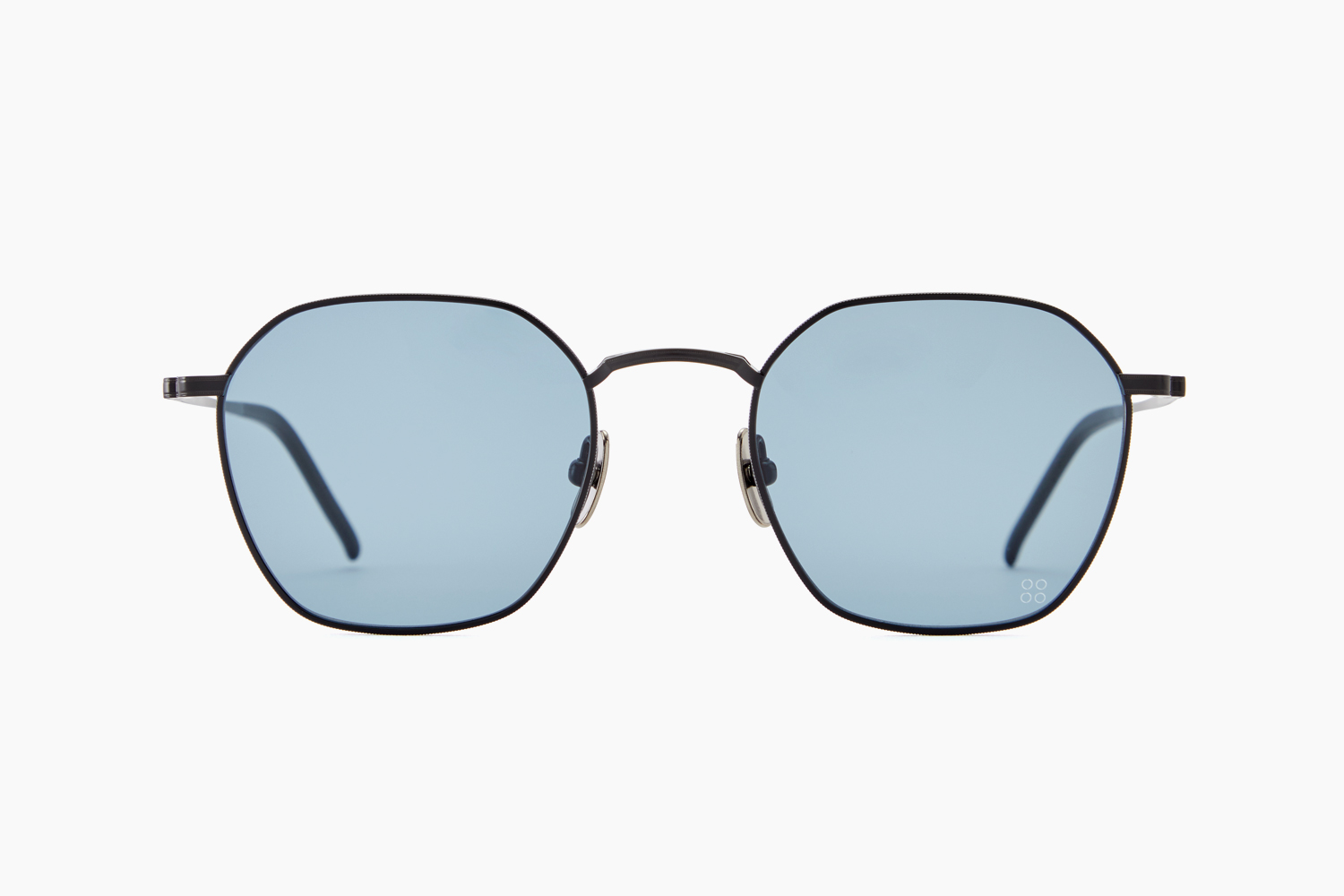 ブランド初のオールチタンサングラス。フロントは柔らかくモダンな表情ヘキサゴン型に加え、エッジを立たせ立体感を出したブリッジが程よい個性を演出しています。プレーンになりすぎないようにあしらわれたリムの彫金は高級感を高めています。マットブラックのメッキにブルーレンズが装着されコンタストをはっきり表現。スタイリングに馴染みながらもアクセントとしても楽しめそうです。